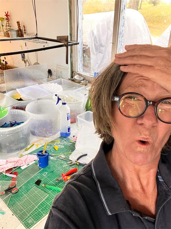 Think tubs of offcuts, tiny glass frits on every surface, sketches scattered everywhere — you get the drift. It might look like madness, but to me, it’s where all the wonky magic happens.